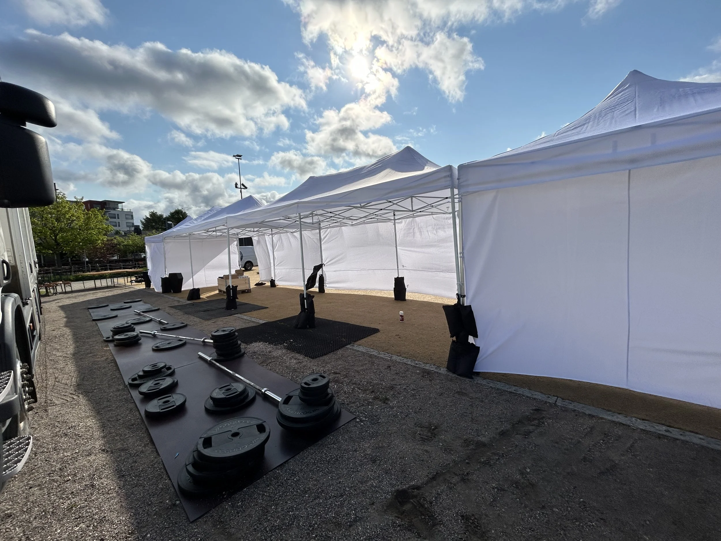 Kaikki teltat ovat väriltään valkoisia ja kankaat ovat siistissä kunnossa. Pop-up teltat ovat helppo ja nopea koota avautuvan mekanisminsa ansiosta. Juhlateltat ovat myös helppoja koota rungon napsautusmekanismin ansioista.